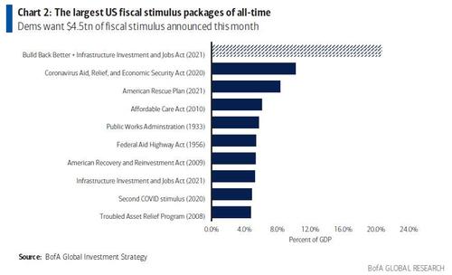 Perché tanta carne al fuoco? Lo mostrano questi due grafici, dai quali si nota chiaramente come Washington abbia già ampiamente archiviato il taper del Qe come problematica da affrontare e ora si stia concentrando su altro. Il lato fiscale della deriva assistenzialista-statalista: il pacchetto Build Back Better, una vera e proprio valanga di stimolo della spesa pubblica quantificabile in qualcosa come 4.500 miliardi di dollari, fra investimenti infrastrutturali bipartisan e appunto programma di cosiddetta riconciliazione nazionale post-pandemia.