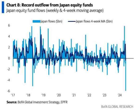 O forse no. Perché nessuno vi dice la verità. E cioè che esattamente come Tokyo, Francoforte non sta per compiere il suo errore per propria convinzione. Ma unicamente per evitare che esploda la bolla azionaria Usa prima delle presidenziali. Quando sei suddito, devi sacrificarti per il Re. E col Giappone schiantato e gli outflows azionari nipponici a confermarlo, come mostra la figura record delle equities registrata la settimana scorsa, ora è il turno dell’Europa.