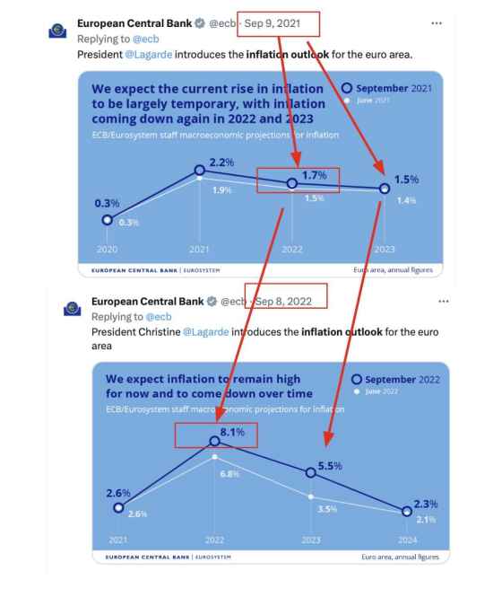 Ma con il voto che si avvicina, occorre cominciare a correre ai ripari. Servono sacchetti di sabbia per le trincee. Non ci credete? Pensate che la mia sia soltanto dietrologia? Perfetto, lascio che parlino questi grafici, i quali comparano gli annunci della Bce rispetto alle prospettive inflazionistiche con la realtà.
