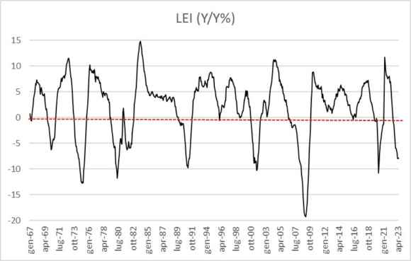 E qui la questione è tutta di interpretazione. Anzi, quasi di approccio. Esattamente come in Margin call, poiché al cauto ottimismo dell’analista che parla di una musica che sta rallentando, il boss contrapponeva la certezza che la musica si è fermata e ormai si sente solo silenzio. E come nel film, la base di tutto sta nel capire non quale andamento e volume presenti il ritmo odierno. Bensì quello che balleremo (o non balleremo) fra un mese o un trimestre o un anno. E nel caso degli indicatori macro, c’è poco da stare allegri. Questo primo grafico parla chiarissimo al riguardo: il Leading Economic Index (Lei) ci dice la correlazione attuale somiglia molto a quella del 1990, 2001, 2008 e 2020. Non esattamente annate da ricordare o incorniciare. A meno di non essere stati pesantemente short.
