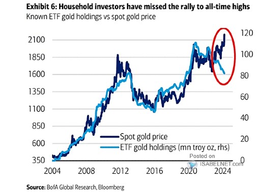 Intento com’era a seguire le mosse di Nvidia e Gamestop, persuaso che la coda del rally in atto non avrebbe offerto repliche e che certe valutazioni dipinte come da tonfo dai siti e dai blog rappresentassero un’occasione migliore dei saldi da Walmart, ecco che invece Mr. Smith ha preferito perdere il treno del rally aureo. Il gap fra valutazione dell’oro fisico e detenzioni in ETF non è mai stato ampio come oggi. Mai. Nessuno ha voluto credere e investire nel lingotto. O nella barra. O nelle monete. E nessuno ha voluto replicare tramite strumento finanziario. Tutti a provare la camicia azzurra col collo bianco alla Gordon Gekko, tanto per vedere che effetto faceva. Il tutto mentre il sopracitato Warren Buffett scaricava titoli Bank of America come Dracula eliminerebbe l’aglio e gli specchi dal suo castello. Siete persuasi che una logica simile possa avere un fondamento che non vada a coincidere con la strada per il disastro potenziale?