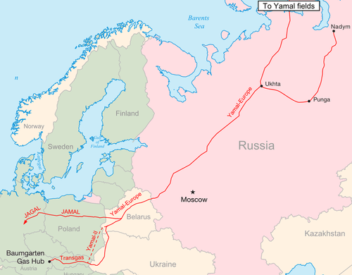 Detto fatto, stante anche quanto dichiarato dallo stesso Vladimir Putin nelle scorse settimane rispetto alla strategicità della nuova pipeline e delle autorizzazioni ancora in attesa, aspettiamoci una risposta con i fiocchi. Di neve, vista la stagione. Geniale. Perché oltre al meteo che ormai volge verso l’inverno pieno e nell’arco di settimane vedrà sparire il clima relativamente mite di cui ancora godiamo, quanto deciso dall’Ente tedesco avrà immediate conseguenze sulle bollette di cittadini e imprese. Nella sola giornata di martedì, non appena resa nota la decisione, il prezzo dei futures sul gas europeo trattati ad Amsterdam ha segnato un +17% intraday, tornando in area 100 euro per kilowatt/ora (per l’esattezza, ha chiuso a 91 euro). Ma non basta. Questa cartina mostra plasticamente parte del tracciato della pipeline esistente fra Russia ed Europa, la Yamal-Europe che porta il gas di Gazprom principalmente all’hub tedesco di Mallnow.