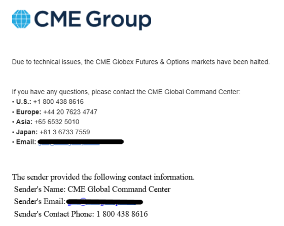 Bloccare quella corsa a misero e accettabile +2%, comunque capace di flirtare con il massimo storico. Ma non mettere il mento oltre la linea del traguardo dei 55 dollari l’oncia. Peccato che si sia dovuti ricorrere alle maniere a dir poco estreme: bloccando di fatto tutto il trading Globex del CME Group per ottenere quel risultato. Due to technical issues, ovviamente. Un maledetto data center in Illinois ha riscontrato un problema di raffreddamento. E per due ore, stop a tutte le negoziazioni.