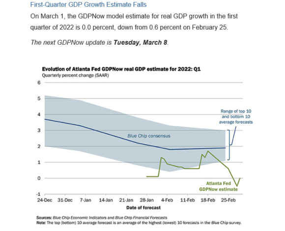 E cosa dire della scelta europea di ampliare la lista delle banche russe estromesse da SWIFT ma esentando – chissà come mai – Gazprombank, la finanziaria del gigante energetico? Di fatto, una vera cassaforte del regime che può operare tranquillamente. Signori, mettete da parte per un attimo le emozioni e guardate queste due immagini, le quali ci mostrano quali siano le prospettive economiche che un mondo apparentemente lanciato verso un patto di mutua distruzione finanziaria sta per affrontare: stagflazione. All’ennesima potenza.