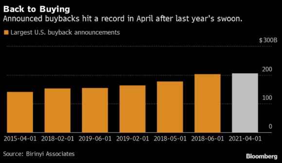 Di fatto, Wall Street sta in piedi per auto-conservazione della Corporate America che utilizza parte dei profitti da Covid-rally per riacquistare propri titoli. Abbassa il flottante, tiene alte le valutazioni e dispensa dividendi e bonus.