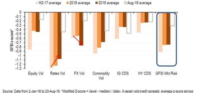 Ce lo mostra questo altro grafico, relativo all’indice GFSI Risk Indicator di Bank of America.