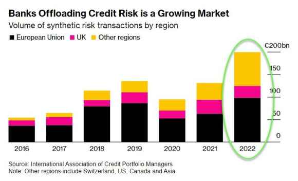 Compare in un report pubblicato da Blackrock su stime della Pemberton Asset Management. E cosa ci dice? Due cose. Primo, il terrore dell’endgame bancario su Basilea III e sulla pressione regolatoria che porterà in dote potrebbe vedere aumentare il volume delle transazioni Srt delle banche Usa del 30-40% all’anno per i prossimi due anni. Secondo, dal 2018 in poi le banche europee hanno recitato la parte del leone in questo schema di trasferimento del rischio.