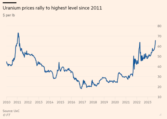 Certo, l’abbondante decennio di ritardo rispetto all’attivismo africano della Cina non è recuperabile. Ma forse, qualcosa per frenare le mire della Russia si può ancora mettere in campo. Perché la lezione del Niger è stata di quelle dure da digerire, soprattutto per la Francia. E il grafico posto nei commenti mostra come il prezzo dell’uranio lo confermi. Plasticamente.