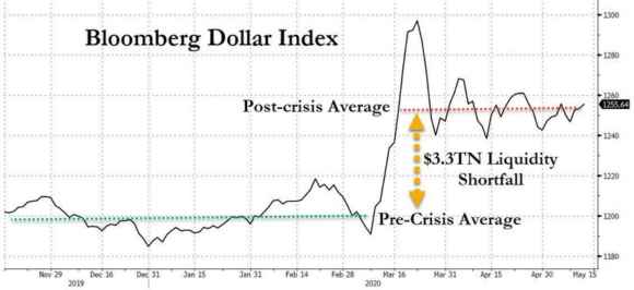 E signori, già ragionare così è da folli, non fosse altro perché si offre ufficialmente al Qe lo status di intervento “ordinario” rispetto alla straordinarietà dei tassi negativi. Tant’è, ormai il livello è questo. E attenzione, perché il problema dell’ulteriore espansione dello stato patrimoniale va risolto in tempi brevi, poiché al netto di quanto già iniettato, questo grafico ci mostra come il mercato stia patendo fin da ora un’altra scarsità di liquidità in dollari.