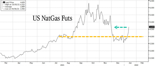 C’è un problema, però: essendo un ingrediente fondamentale di moltissimi cibi confezionati, quelli più a buon mercato e di più largo consumo, ecco che un rialzo dei prezzi nel carrello della spesa è da considerarsi assicurato, da qui ai prossimi mesi. Infine, la dinamica peggiore, quella rappresentata nel terzo grafico: il gas naturale Usa nella giornata di mercoledì ha segnato un incremento intraday del 13,3% a causa dell’ondata di gelo che ha cominciato ad abbattersi sulla East Coast statunitense. Tradotto, se la pressione rialzista continuerà – supportata da previsioni meteo inclementi per la parte finale dell’inverno -, l’arbitraggio garantito dallo spread di prezzo fra gas Usa e Ue potrebbe perdere di appeal per i brokers. I quali, di fatto, sancirebbero la fine dell’unica risorsa su cui a oggi l’Europa può contare per evitare prezzi ulteriormente alle stelle e rischio black-out. Ovvero, le flotte dirottate dalle tratte asiatiche in nome del profitto.