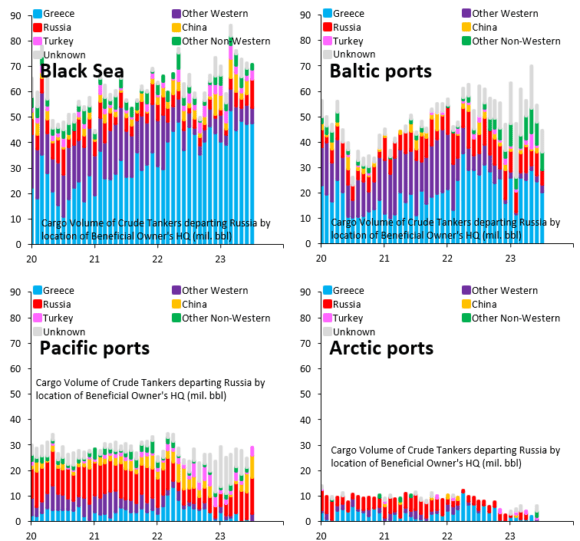 Primo, le navi della Grecia trasportano la parte sostanziale del greggio russo. Secondo, paradossalmente il trend è incrementato dopo lo scoppio della crisi ucraina. Ovvero, sotto sanzioni. Terzo, oggi come oggi Atene e Mosca sono legate indissolubilmente da un cordone ombelicale di ipocrita grey market, noto a tutti e da tutti tollerato. Quarto, gli armatori greci scaricano i loro vecchi tankers alla Russia, Che li compra in automatico. Nuove commesse, nuovi stanziamenti. Mosca è obbligata a esportare petrolio a ogni costo e condizione, quindi “done deal”. Tutto questo, alla luce del sole. Ma lontano dai riflettori dei media. I quali, stranamente, quando parlano di Grecia ricorrono sempre al cliché assolutorio del Paese martire della Troika. Scordandosi il legame con Pechino nato dopo la cessione dei porti del Pireo, quello con la Germania – un tempo “torturatrice” – che ha acquisito gli scali aeroportuali più strategici per il turismo e quello con Mosca che vede in Atene il vero broker per bypassare le sanzioni. In seno all’Ue.