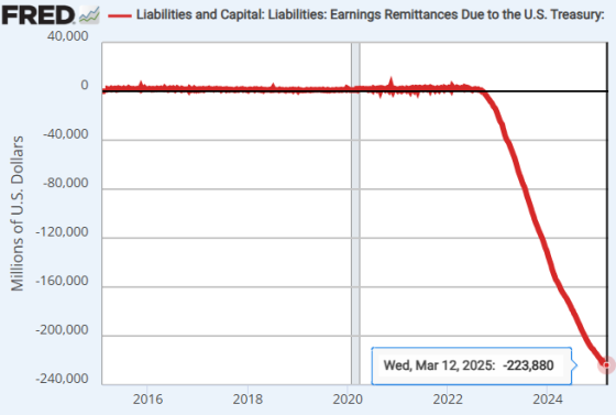 Di certo c’è che, stando a un recente studio della Bce, il 17% del finanziamento delle banche dell’eurozona è in dollari. A occhio e croce e sempre a mio modestissimo avviso, una sottostima di quelle pericolose da far passare come messaggio. Ma ancora più pericoloso appare, a mio avviso, il fatto di non avere ben presente quale sia il quadro d’insieme. Dopo i 114 miliardi di perdita operativa del 2023, infatti, lo scorso anno la Fed ha registrato un altro -77,6 miliardi di dollari. Il dato ufficiale è stato reso noto sempre venerdì scorso. Ma, ovviamente, è passato sotto silenzio. Perché era già in moto la macchina ansiogena delle tariffe.