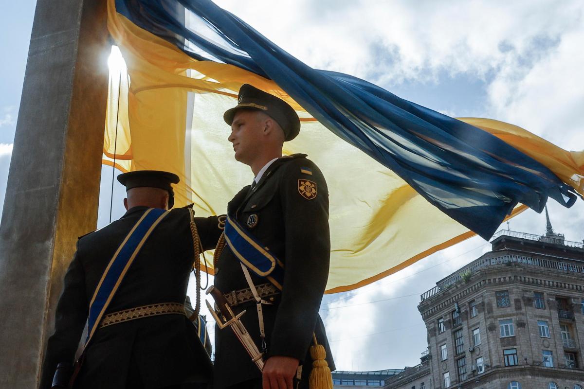 Alzabandiera nel Giorno nazionale della bandiera, Kyiv, 23 agosto 2025 (Ansa)
