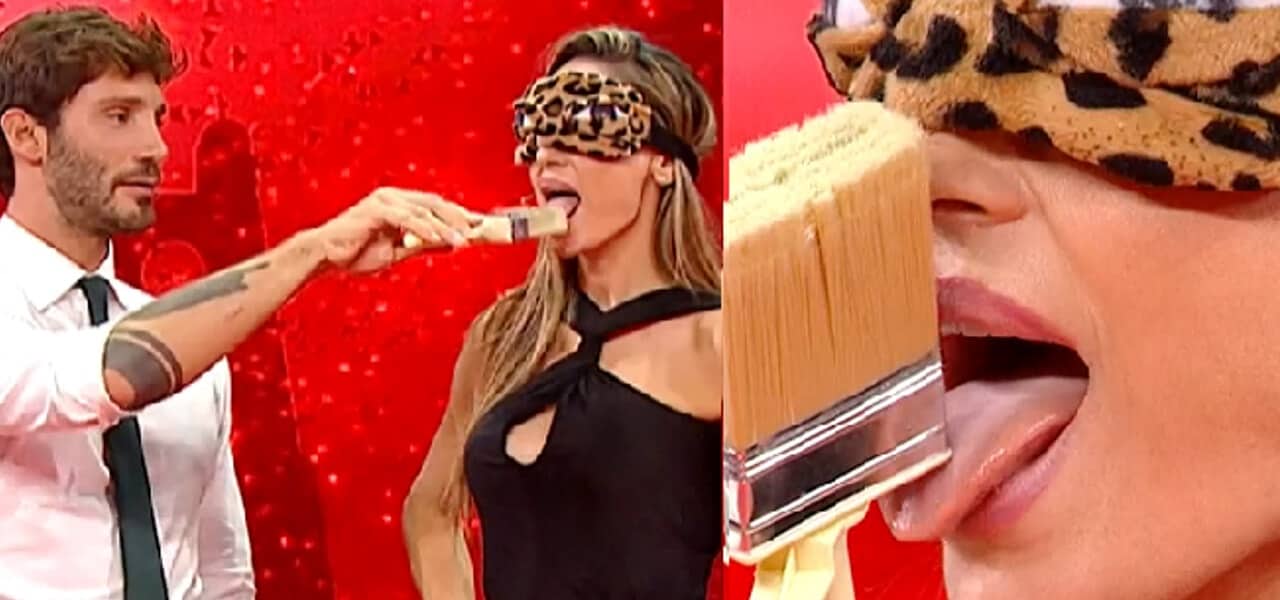 Anna Tatangelo accetta di partecipare al gioco non nascondendo un pizzico di paura. “Ragazzi sono preoccupatissima” esordisce Tatangelo. “Anna tranquilla che è facilissimo, lo indovini alla prima leccata”, le dice Katia.Stefano De Martino le avvicina così il pennello. La cantante prova ad indovinare l’oggetto in questione. “Tira fuori la lingua”, le dice Stefano mentre la Tatangelo assapora il pennello, l’oggetto in questione che poi indovina.