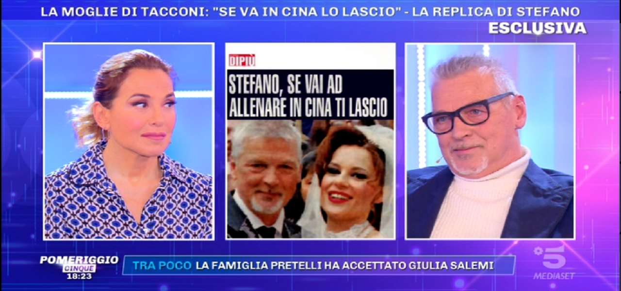 Stefano Tacconi shock a Pomeriggio 5. Si torna a parlare dell’ex calciatore, ultimamente al centro di una diatriba con la moglie affrontata sul settimanale DiPiù. Laura, moglie di Tacconi, ha infatti scritto una lettera a suo marito, chiedendogli di non lasciarla per andare in Cina per lavoro. Lui, ospite a Pomeriggio 5, inizia replicando con una battuta: “Se lo sapevo prima, andavo via prima in Cina!” Poi però chiarisce che effettivamente “C’è la possibilità che ci vado ma da solo.”