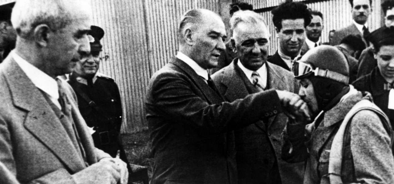 Al centro, Mustafa Kemal  Atatürk (1881-1938) con la figlia Sabiha Gokcen (LaPresse)
