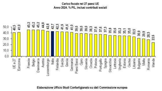 I nodi da sciogliere – Tra gli interventi è ipotizzata una riduzione sull’Irpef finalizzata a ridurre il carico fiscale che in Italia rimane elevato, risultando nel 2024 di 2,2 punti percentuali superiore alla media europea.