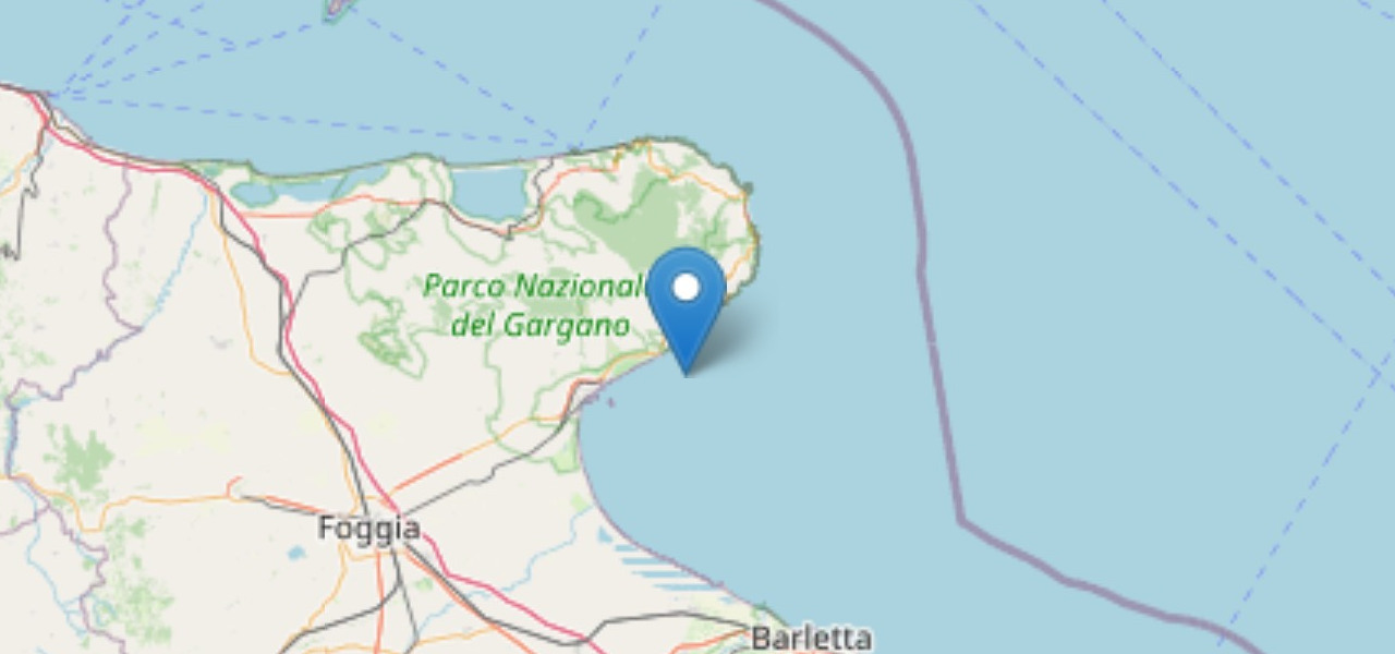 Terremoto oggi in Puglia: una scossa di magnitudo 2.1 ha avuto luogo alle 2:50 nel Golfo di Manfredonia, vicino a Foggia, a una profondità di 10 km, con l’epicentro a 13 km dalla costa di Manfredonia, città che insieme a Mattinata e Monte Sant’Angelo è tra le più vicine alla zona interessata; terremoto oggi, anche se leggero, che ha coinvolto un’area abitata da oltre 76mila persone, compresi comuni come Foggia e Barletta, ma non sono stati segnalati danni a case o feriti.
