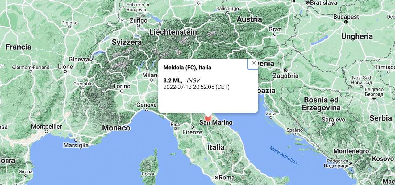Una scossa di terremoto si è verificata oggi in Italia, stando all'Ingv, in quel della località di Meldola, con una magnitudo di 3.2 gradi