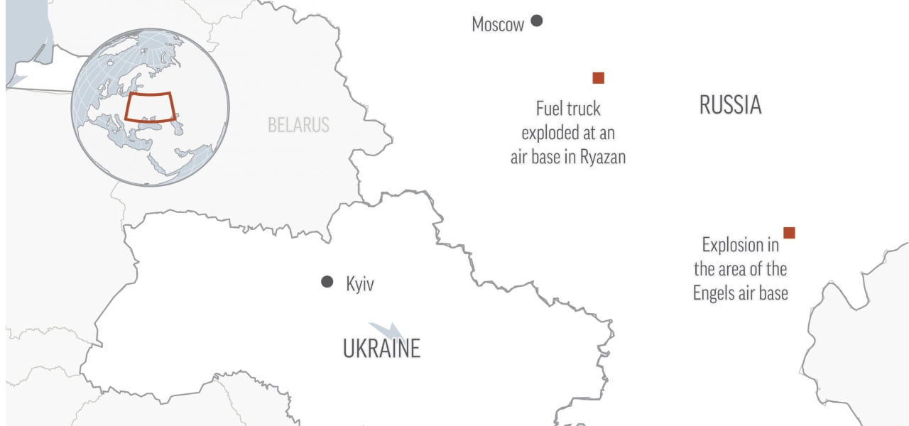Guerra in Ucraina, droni attaccano aeroporti in Russia (mappa su LaPresse, 2022)