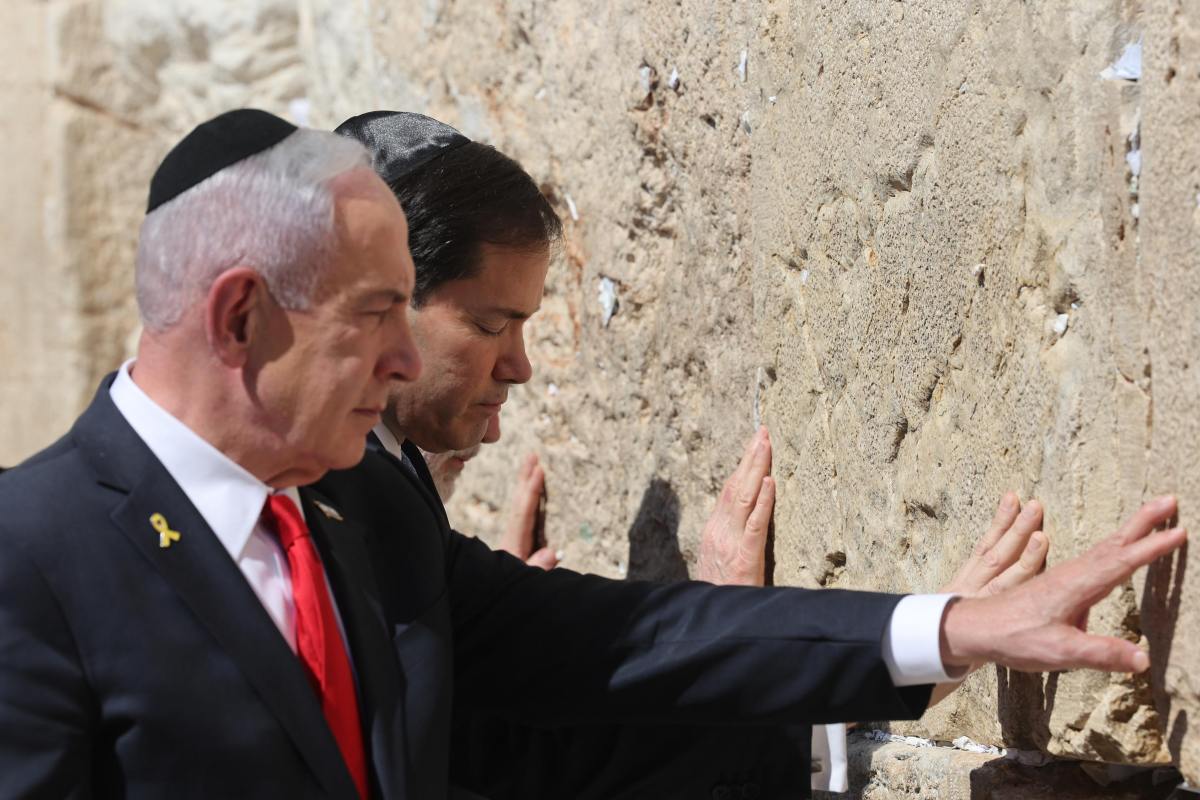 Benjamin Netanyahu con il segretario di Stato Usa Marco Rubio al Muro del pianto (Ansa)