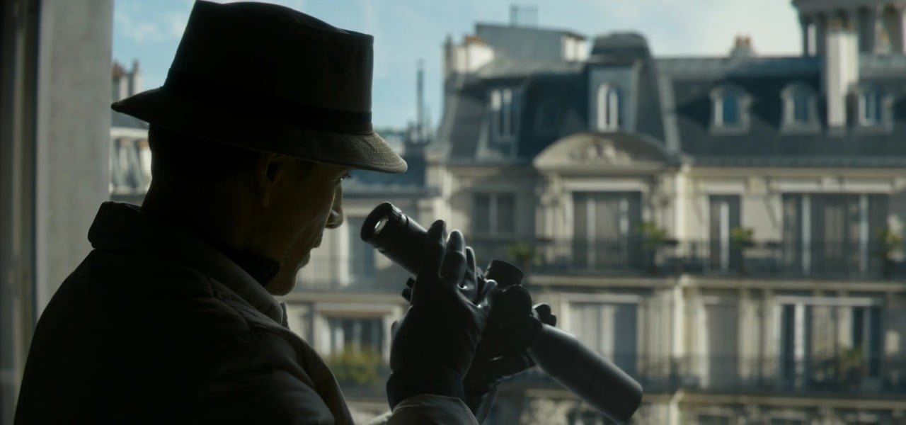 Il film regge per i primi venti minuti e regge molto bene. Il paranoico e psicopatico Killer è in attesa del suo obiettivo. Un’attesa fatta di cibo fast food, yoga, riposo programmato e ginnastica. Ma è il pensiero del protagonista che acchiappa: si racconta, parla a se stesso e del suo modus operandi per farlo sapere a noi. E questo con il suo voice over. Un’attesa che tra il chiaro scuro, le luci soffuse, le ombre aumenta la tensione. Il Killer è meticoloso, i dettagli e la preparazione sono tutto per lui. Osserva dal cannocchiale del fucile la finestra del palazzo di fronte dove dovrà apparire la persona da colpire, ma al tempo stesso guarda la realtà intorno e si racconta. Nel vagare della cinepresa attraverso il mirino sulle finestre, sulla piazza, sulle persone e i loro gesti, il richiamo al maestro Alfred Hitchcock è inevitabile.