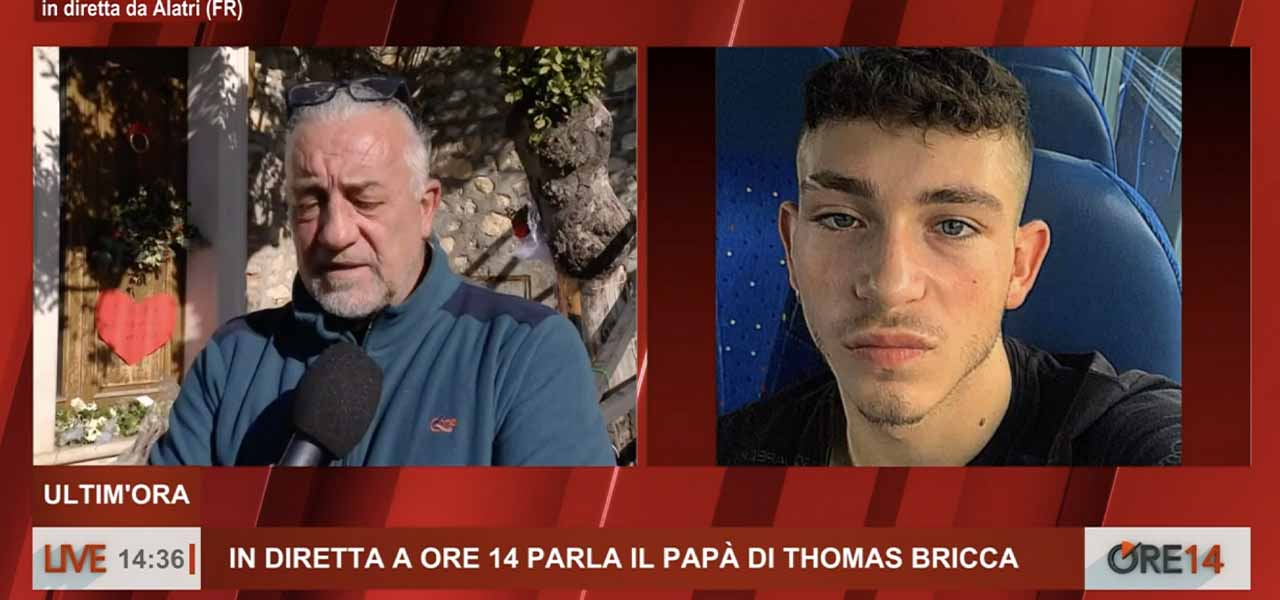 “Consegnatevi e pentitevi“. È con queste semplici parole, dense di dolore e disperazione, che il padre di Thomas Bricca, Paolo, si rivolge ai killer del figlio 19enne attraverso i microfoni della trasmissione Ore 14, confidando in una celere risposta della giustizia. Gli assassini del giovane, colpito con un proiettile alla testa il 30 gennaio scorso nel cuore di Alatri, sono ancora a piede libero e si indaga a tutto campo per chiudere il cerchio intorno alle responsabilità dietro l’omicidio. Il padre di Thomas Bricca nutre un sospetto e lo ribadisce davanti alle telecamere: forse chi ha sparato al figlio è qualcuno che conosce, qualcuno di apparentemente insospettabile e il cui nome sarebbe sulla bocca di tutti già dalla sera dei tragici fatti.