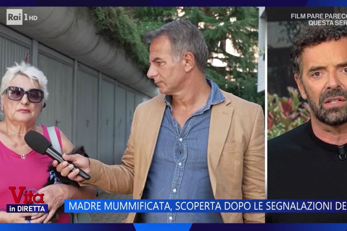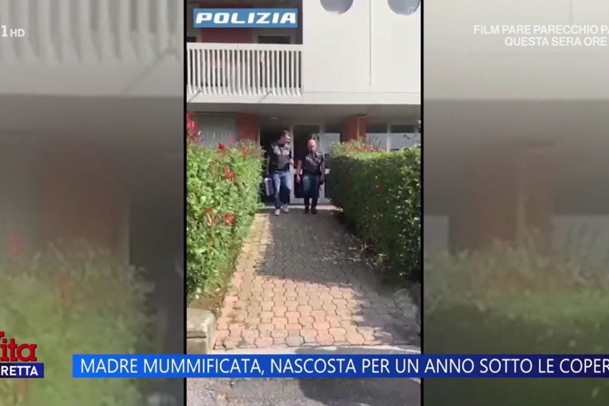 A La Vita in Diretta la vicenda choc della donna che ha tenuto la madre mummificata in casa per un anno, continuando a percepire la pensione e facendo la solita vita di prima. Il cadavere lo aveva nascosto sotto le coperte, su una sorta di brandina in una delle due camere in un appartamento di un condominio di Bergamo.
