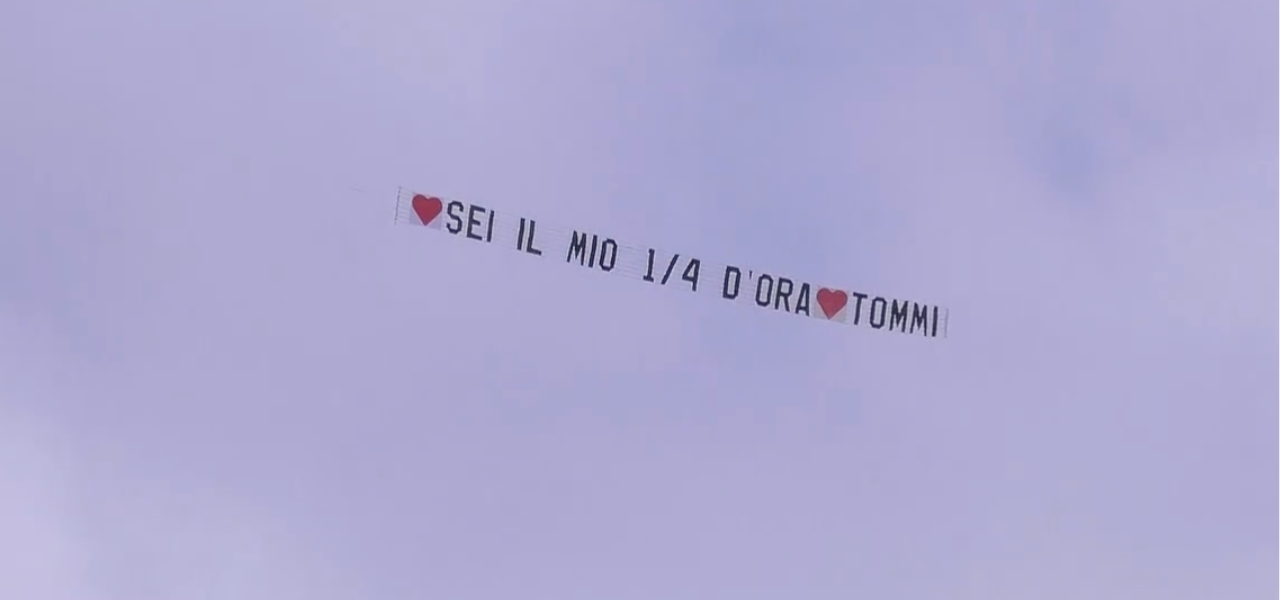 Considerati come una delle coppie più vere al Grande Fratello, Tommaso Franchi e Mariavittoria Minghetti continuano ad amarsi follemente anche a distanza. Ricordiamo, infatti, che lui è uscito dalla casa più spiata d’Italia durante la scorsa puntata, quando è stato eliminato dal programma. Oggi, 23 marzo 2025, i cieli romani hanno visto passare il messaggio più dolce e romantico mai letto dai concorrenti rendendo così la domenica di Mariavittoria speciale e piena di sorrisi.