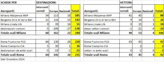 L’area di attrazione flussi di Milano la ritengo superiore a quella di Roma per potenziale economico dei Paesi cui ci si connetterebbe. Analizzando la tabella precedente potete avere un’idea da quanti vettori e destinazioni intercontinentali oggi vengono raggiunti gli aeroporti di Malpensa e Orio Al Serio insieme rispetto a Roma Fiumicino. Questi numeri credo dovrebbero portare le nostre autorità aeronautiche e politiche a ripensare tutta la situazione aeroportuale di Milano per creare il nuovo aeroporto intercontinentale.