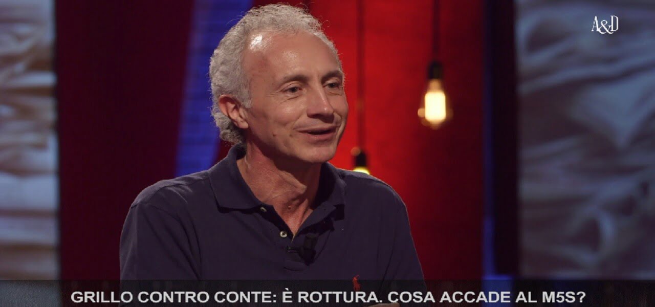 Dibattito ad Accordi e disaccordi sul caos nel M5s, Marco Travaglio e Andrea Scanzi contro Beppe Grillo. Il direttore de Il Fatto Quotidiano ha esordito così: «Sono poco interessato sui dettagli dell’uno o dell’altro, c’è un modo semplice per fare chiarezza: Grillo autorizzi Conte a pubblicare gli scambi di e-mail sullo Statuto, così scopriremo che voleva una diarchia e un ruolo del garante con più poteri di quelli che ha adesso e di quelli che avrebbe avuto il leader».