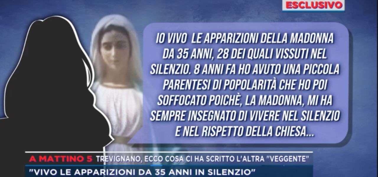 A tal proposito ha aggiunto: «Quando ho visto per la prima volta Gesù e la Madonna pensavo fosse una illusione ottica, non immaginavo che da lì a poco avrei sviluppato questo dono». Ma la nuova sedicente veggente di Trevignano ha anche precisato: «Io vivo le apparizioni della Madonna da 35 anni, 28 dei quali vissuti nel silenzio. Otto anni fa ho avuto una piccola parentesi di popolarità che ho poi soffocato poiché, la Madonna, mi ha sempre insegnato di vivere nel silenzio e nel rispetto della Chiesa». Stando a quanto ricostruito da Mattino Cinque, questa seconda sedicente veggente di Trevignano vive in preghiera e nel nascondimento, rifuggendo in maniera totale il mondo del denaro.