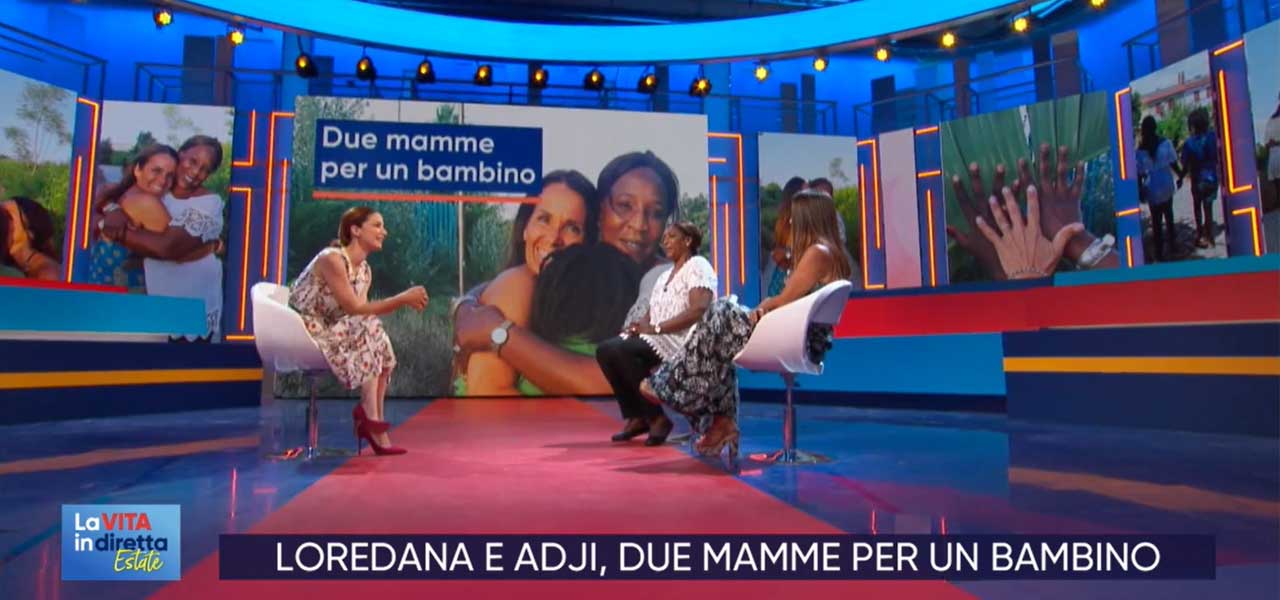 Due mamme per un bambino, ma in questo caso si tratta di due amiche: nel salotto tv di “La Vita in Diretta – Estate”, Andrea Delogu ha parlato oggi pomeriggio della vicenda che arriva da Cagliari e che sta facendo discutere dal momento che le due donne, una di origini senegalesi e l’altra italiana, non sono di fatto una coppia ma solamente amiche di vecchia data. Un Tribunale ha dato di fatto loro ragione sottolineando il “preminente interesse del minore” e a parlarne in studio c’erano mamma Adji e la signora Loredana che ha parlato in particolare del momento in cui aveva visto il bambino, nato nel 2007, e dell’episodio in cui questi per la prima volta l’aveva chiamata “mamma”. “Di lei mi sono fidata, l’ho conosciuta e ora sono contenta: siamo una famiglia” ha spiegato alla Delogu la mamma naturale del bambino, raccontando pure alcuni momenti della loro quotidianità. “Io l’ho fatto solo nascere, ma è lei che l’ha cresciuto” ha poi aggiunto, facendo riferimento all’amica Loredana e poi emozionandosi quando viene mandato in onda un servizio su un tema realizzato dal figlio che si dice felice di avere due mamme.