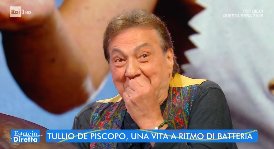 Il grandissimo Tullio De Piscopo è stato ospite nella giornata di ieri del programma di Rai Uno, Estate in Diretta. Dopo una rullata alla batteria il grande musicista ha svelato: “La rullata iniziale della sigla di Porto Bello l’ho fatta io, la sigla è rimasta sempre, con il mio rullo”. E ancora: “Io sono nato con le bacchette in mano, non le mollo mai, come Pino Daniele aveva sempre la chitarra in mano. Io non stavo in casa, la nostra casa era la strada, e stavo sempre con le bacchette, e già allora ‘reppeggiavo’ tutto ciò che vedevo nel quartiere. Il mio sogno è sempre stato fare il batterista, il rumore… quando ero piccolo fantasticavo di notte, sognavo e pensavo a cosa fare, e molte cose si sono avverate. Io baciavo gli lp del più grande batterista di jazz di tutti i tempi e poi ho suonato anche con lui”.