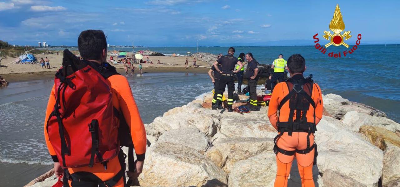 Le operazioni di soccorso per mettere in salvo la turista che era scivolata e rimasta incastrata tra i massi nei pressi del faro di Bibione sono durate oltre due ore. Sul posto pompieri arrivati da Lignano Sabbiadoro e Venezia, sommozzatori giunti in elisoccorso e numerosi operatori del 118. Tutti hanno lavorato insieme senza sosta. L’obiettivo era liberare il corpo della donna senza provocarle ulteriori traumi.