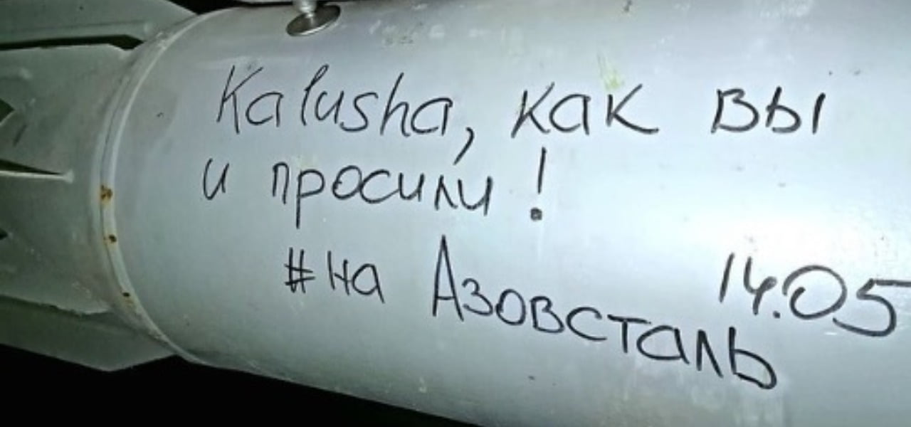 Missili preparati dalla Russia per colpire Azovstal con “dediche” in cirillico alla Kalush Orchestra (“Ucraina e Mariupol? Aiutatele ora!”), che ieri sera ha portato l’Ucraina sul tetto del Vecchio Continente vincendo l’Eurovision Song Contest 2022 nella finalissima tenutasi al “PalaOlimpico” di Torino e condotta da Laura Pausini, Alessandro Cattelan e Mika. La denuncia giunge via social e, purtroppo, sembra trovare anche riscontri fotografici, come documentato dal giornalista Vitaliy attraverso il suo profilo Instagram, su cui ha postato tre istantanee nelle quali si vedono i missili riportanti le inquietanti scritte che si riferiscono ai messaggi di pace lanciati dal palco del capoluogo sabaudo dagli artisti portacolori della nazione avente come capitale Kiev.