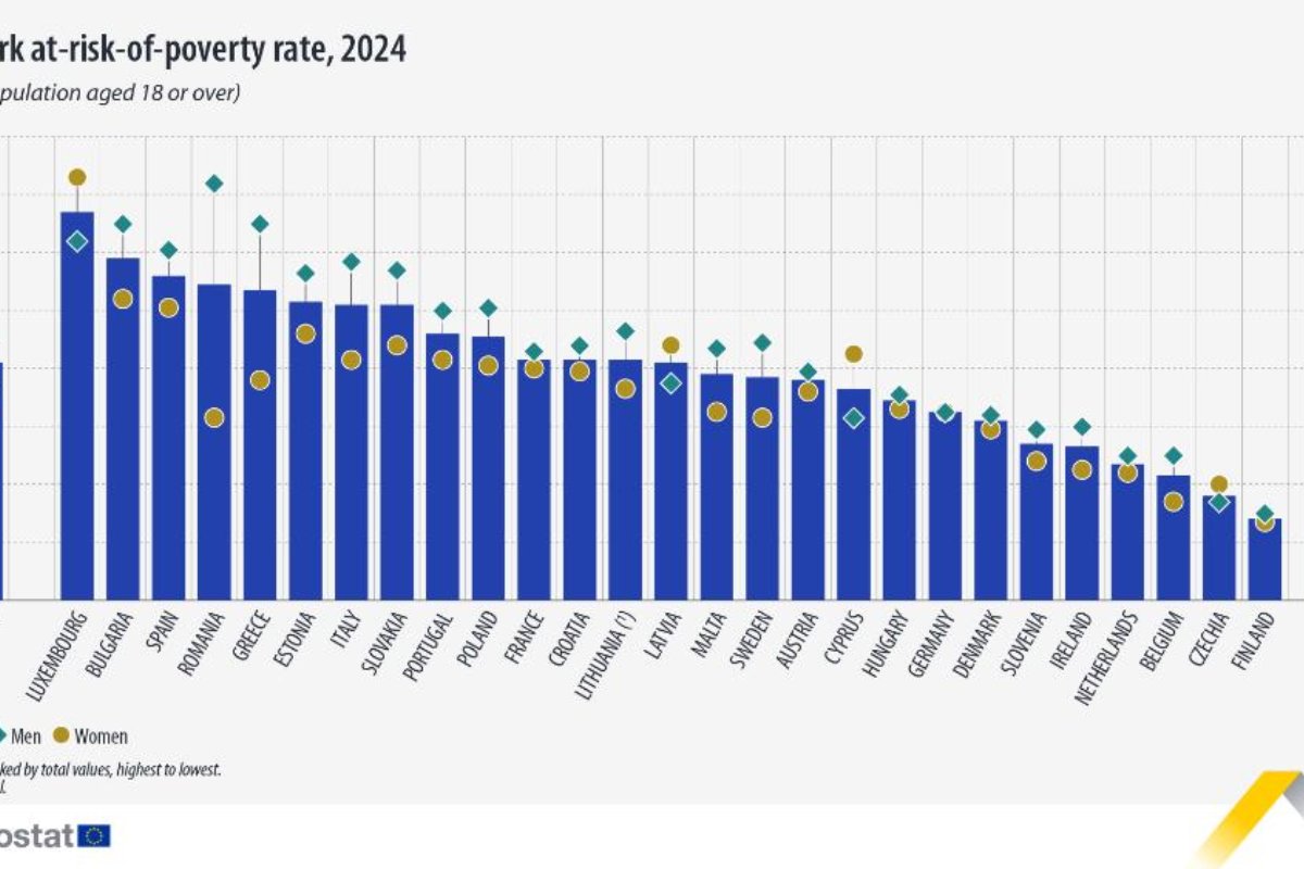 Di contro troviamo la Finlandia, dove invece abbiamo il tasso di povertà più basso in assoluto, solo il 2,8%. Sul totale degli Stati UE, in 22 Paesi il rischio di povertà è maggiore fra gli uomini che fra le donne, con una differenza particolarmente marcata in Romania, ben 8,1 punti percentuali di divario. In Germania abbiamo invece gli stessi tassi, mentre in Lussemburgo, ma anche a Cipro, in Lettonia e nella Repubblica Ceca, primeggiano purtroppo le donne.