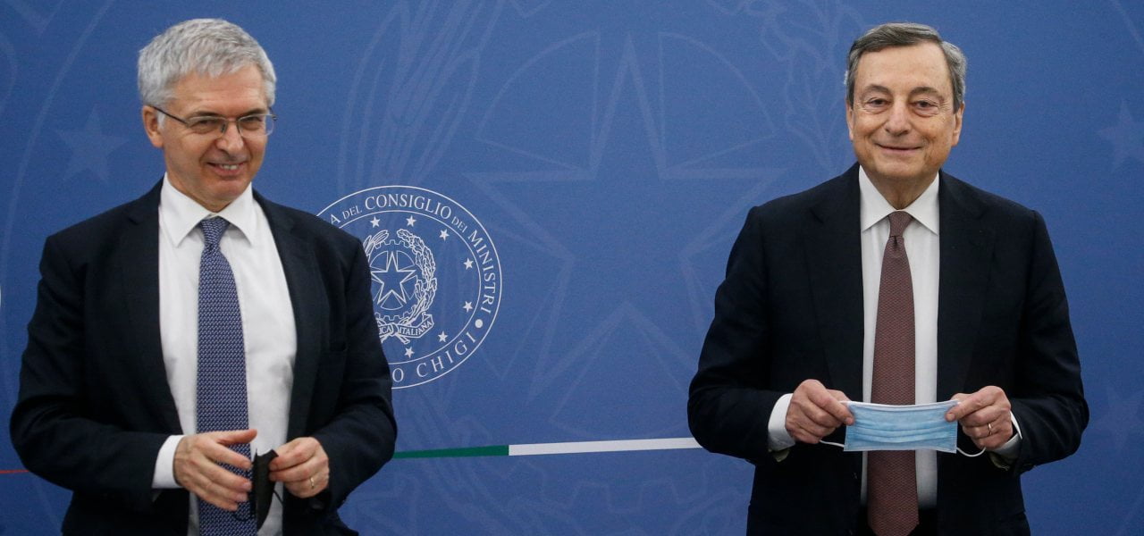 Manovra, Daniele Franco con Mario Draghi (laPresse, 2021)