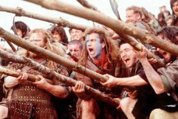 “Braveheart”, 21.10, Rete4: prima battaglia contro gli inglesi, la sequenza è talmente sballata che rasenta il ridicolo. Wallace e i suoi partono di corsa all’attacco gridando e si vede chiaramente che William tiene in mano una picca. inquadratura degli inglesi, ora William corre con nulla in mano, inquadratura degli inglesi, William ha in mano la spada, inquadratura degli inglesi, William ripreso di profilo ha di nuovo la picca, con cui combatterà fino a perderla. Certo che ha vinto innumerevoli battaglie, se riesce a cambiare arma così velocemente!