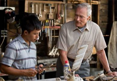 Mercoledì Retequattro propone alle 21.10 un gran film, “Gran Torino” dell’inossidabile Eastwood. Premesso che delle due espressioni di Clint, qui ne mostra solo una (quella senza il cappello), il film merita. Verso la fine del film Walt sta pulendo un oggetto di metallo con un panno giallo. In una inquadratura tiene il panno con la destra e l’oggetto con la sinistra, in quella immediatamente successiva è l’esatto contrario.