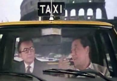 Per oggi ci vorrebbe un film sul lavoro o sui lavoratori… prendiamo “Il tassinaro” di Sordi, su Retequattro alle 16.25… mi sarebbe piaciuto di più un “Mobbing – mi piace lavorare”, ma non lo danno… qua il tassinaro forse fa un po’ il furbetto col senatore Andreotti: passa diverse volte per le stesse strade, in particolare tre volte per via dei Fori Imperiali e Piazza Venezia. Presto svelato il mistero: le scene in macchina sono girate in studio con il fondale che è un loop, e ripropone sempre le stesse inquadrature.