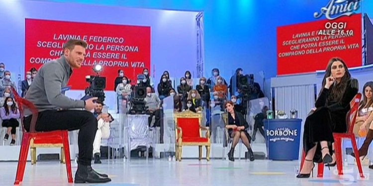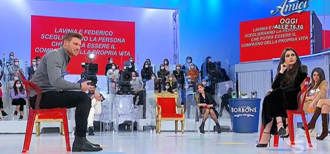Maria De Filippi fa entrare Alessio Corvino annunciando già che Lavinia è arrabbiata con lui. La tronista fa il suo ingresso e dichiara che ci sono dei video e delle foto che mostrano il corteggiatore con un’altra ragazza, che lui dice essere una “cara amica”. A questo punto, la conduttrice manda in diretta un post che lo stesso Alessio ha scritto per “scagionarsi” dal video in questione.