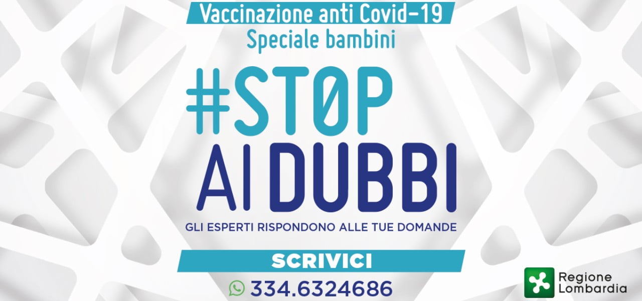 Torna oggi 16 dicembre la rassegna di Regione Lombardia “Stop ai dubbi” per informare i cittadini sulla campagna di vaccini anti-Covid, con esperti scientifici che rispondono in diretta alle domande inviate: con l’apertura oggi della campagna nazionale dei vaccini Pfizer per i bambini 5-11 anni, la rassegna odierna sarà interamente dedicata alle tante domande, dubbi e insicurezze che i genitori lombardi possono manifestare davanti alle vaccinazioni dei propri figli piccoli.
