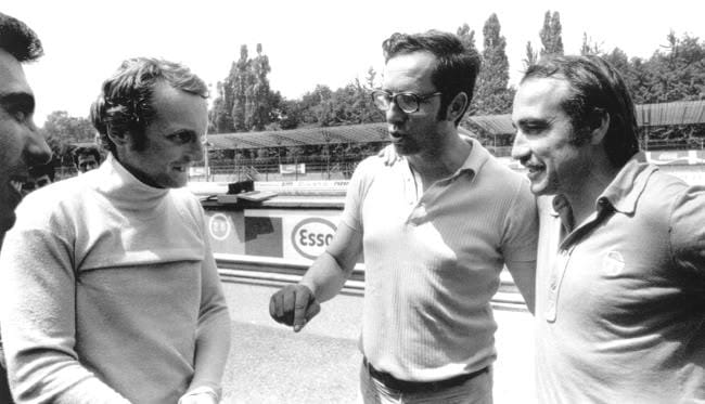 Forghieri con Lauda a Monza nel 1974 (archivio Piciotti)