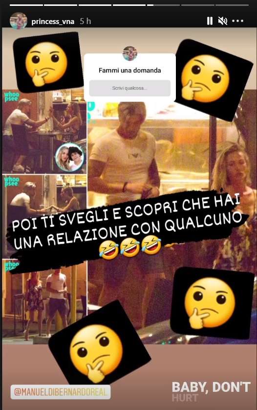 Nelle immagini, Valentina Nulli Augusti e Manuel Di Benardo sono insieme, seduti ad un tavolo, intenti a chiacchierare. Tra i due pare esserci un rapporto di complicità ma non ci sono gesti tali da poter dire che i due siano più di semplici amici. Qualche ora dopo la paparazzata è stata però Valentina ad intervenire sui social, smentendo ironicamente una possibile relazione col tentatore.