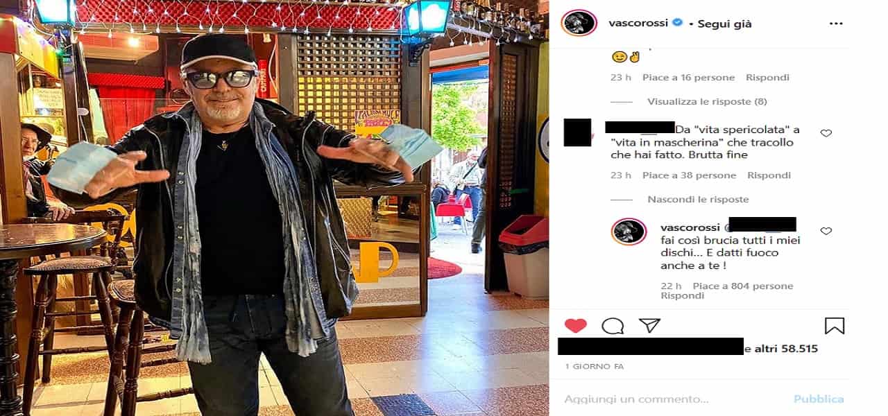 Vasco Rossi sensibilizza i followers sull'uso della mascherina: un fan lo contesta su Instagram e il rocker lo zittisce con una risposta al vetriolo.