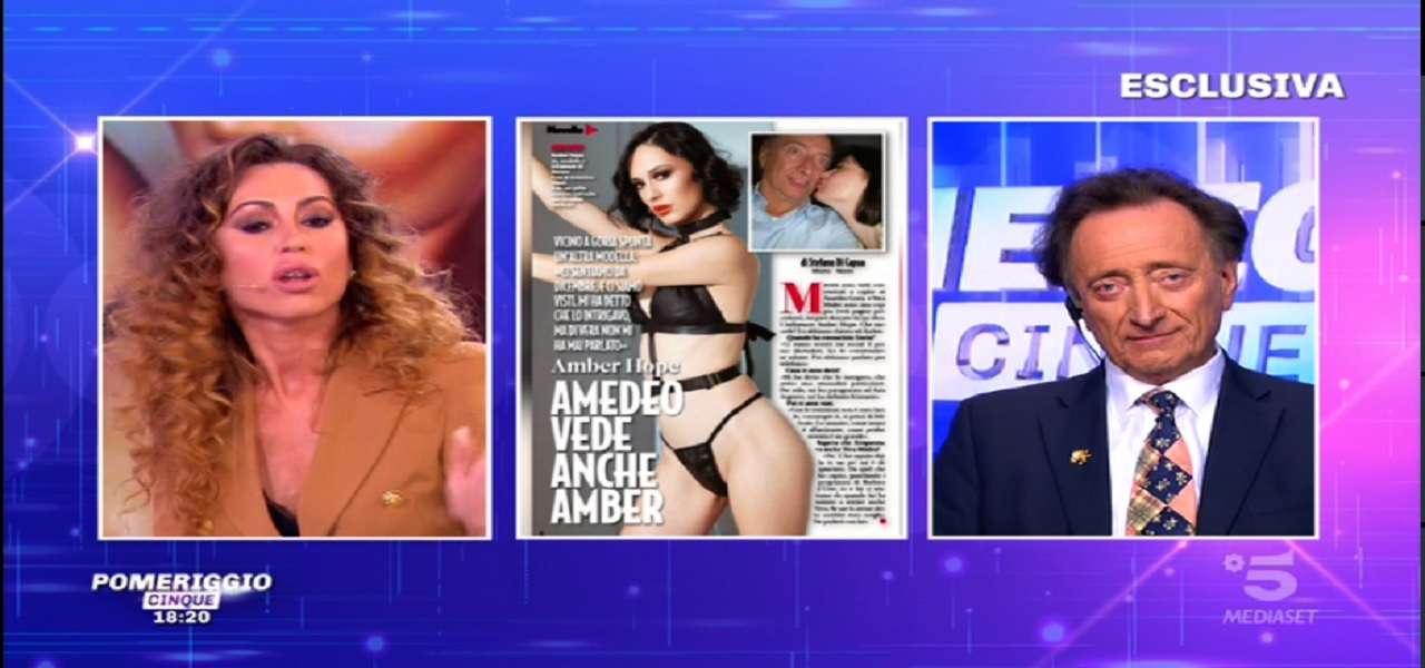 Nel salotto di Pomeriggio 5 anche Guenda Goria, figlia di Amedeo, ha detto la sua su Vera Miales: “Sospiro quando Vera, che è molto carina, continua ad accennare quando dici che hai altro materiale che potresti far vedere e questo mi dà molto fastidio.” Ha così ammonito la donna: “Prima di tutto perché c’è la privacy e non è che ogni cosa deve essere mostrata in Tv, mio padre è comunque un uomo di Tv, ha un’ex moglie famosa… quindi va bene se lo rendi felice ma le cose private che restino tali.” Ma in studio arriva un altro scoop: Amedeo starebbe frequentando anche un’altra donna, Amber Hope. “C’è stato un bacetto” confessa, proprio sul finale, Goria. Insomma, l’intrigo amoroso si complica.