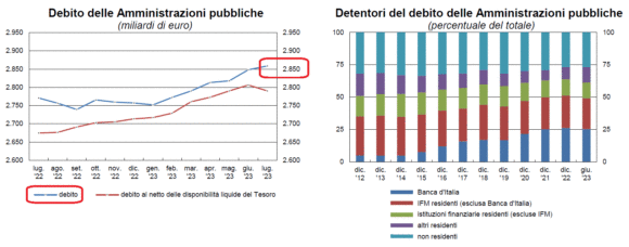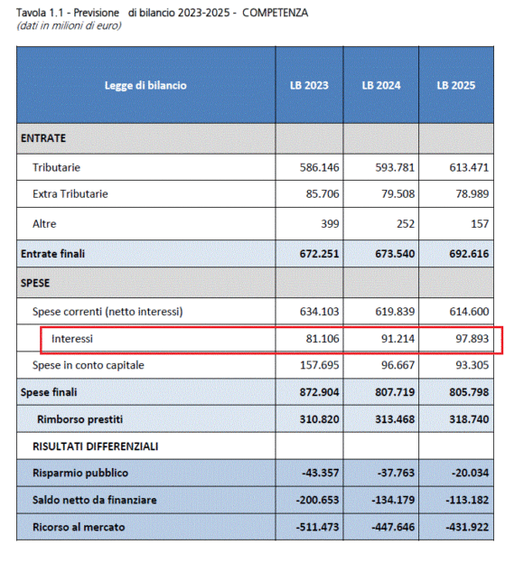Quella voce “interessi passivi” ci sta ancora stretta e le riportate affermazioni del ministro Giorgetti riconducibili all’andamento dei tassi di interesse ci confermano le perplessità maturate in tempi non sospetti. Nel documento “Bilancio semplificato dello Stato per il triennio 2023-2025” le somme previste per l’anno in corso ammontano a 81.106 milioni di euro e nel recente “Rapporto mensile sul conto consolidato di cassa del settore statale e delle amministrazioni centrali” (aggiornato a luglio) i valori assoluti concernenti la formazione del saldo del Settore Statale vede un saldo a quota 38.358 milioni ovvero in forte aumento rispetto ai 32.967 milioni del 2022. Una crescita che, ulteriormente, trova una sua coerente correlazione (e giustificazione) nel comunicato n. 126 diffuso ad agosto dal ministero dell’Economia e delle Finanze: «La spesa relativa agli interessi sui titoli di Stato è aumentata di circa 1.500 milioni rispetto allo stesso mese dell’anno precedente».<