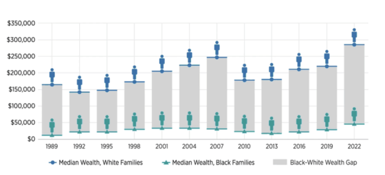Tale divario può esser ricondotto anche nelle scelte di allocazione dei propri risparmi. Secondo un sondaggio della Fed, nel 2022 il 65,6% delle famiglie bianche deteneva investimenti in azioni, contro solamente il 39,2% delle famiglie di etnia nera. Questo mostra come la grande bull-run post-pandemia sui mercati azionari e sul mercato immobiliare abbia contribuito a questo differenziale.