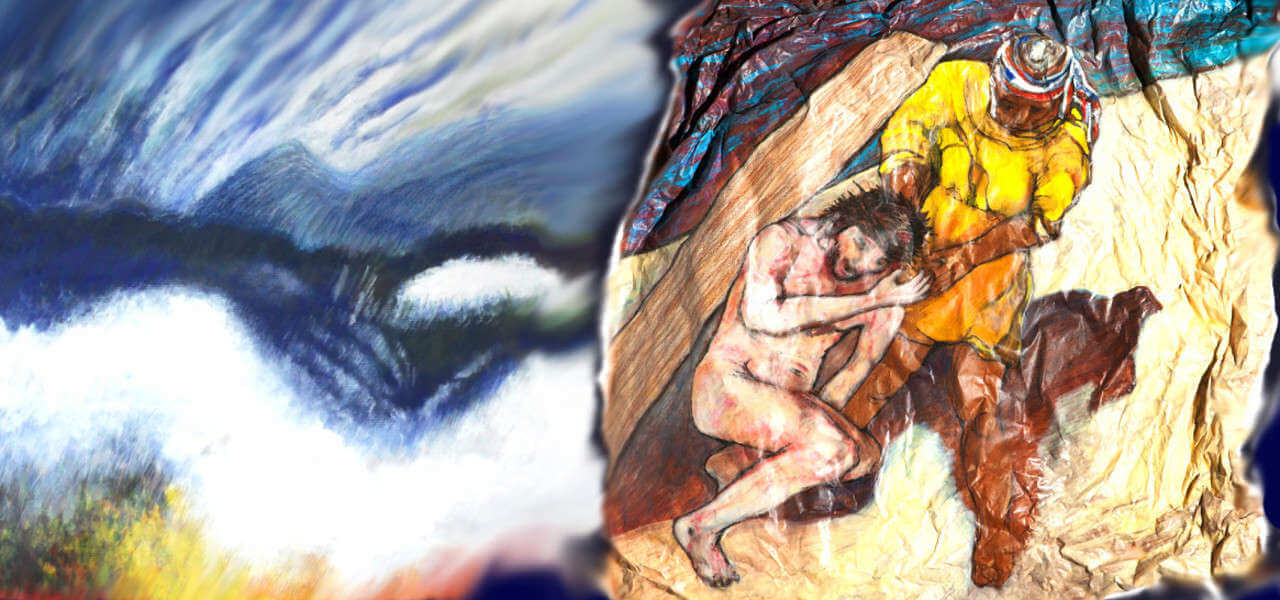 Verso il Golgota - Terre e pastelli e Verso il Golgota col Cireneo di Raffaella Surian